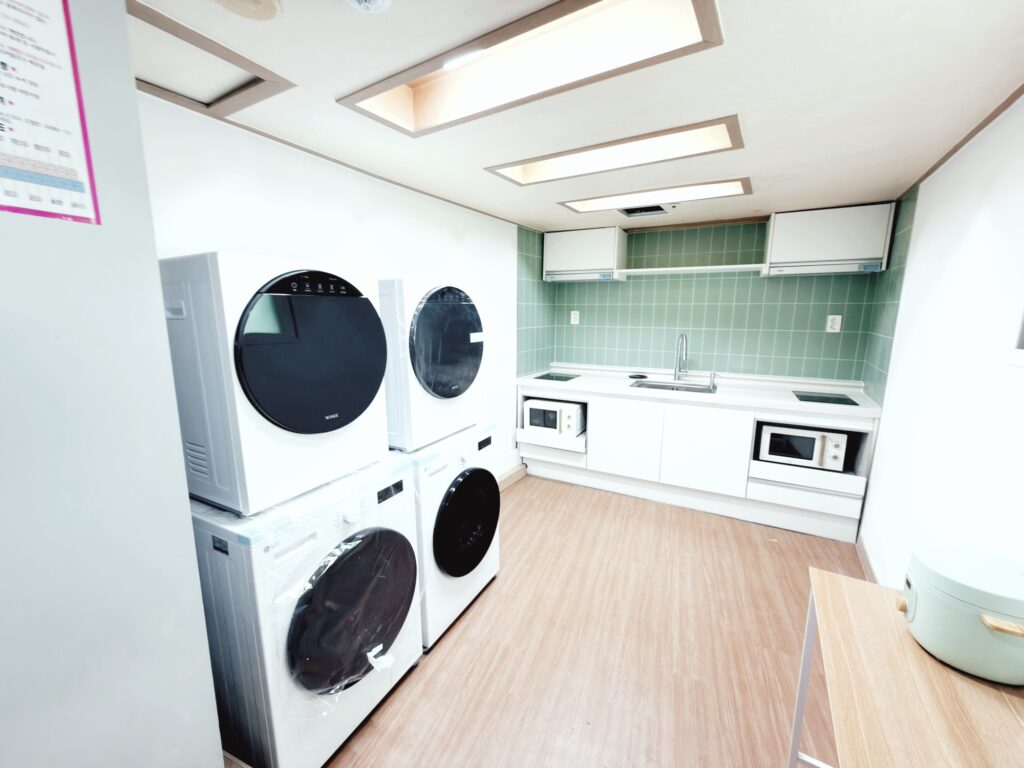 공용 | 공용 주방 공용 화장실&샤워 개인 사물함 중앙 냉난방 세탁기 건조기 전자렌지 인덕션 밥솥 |
